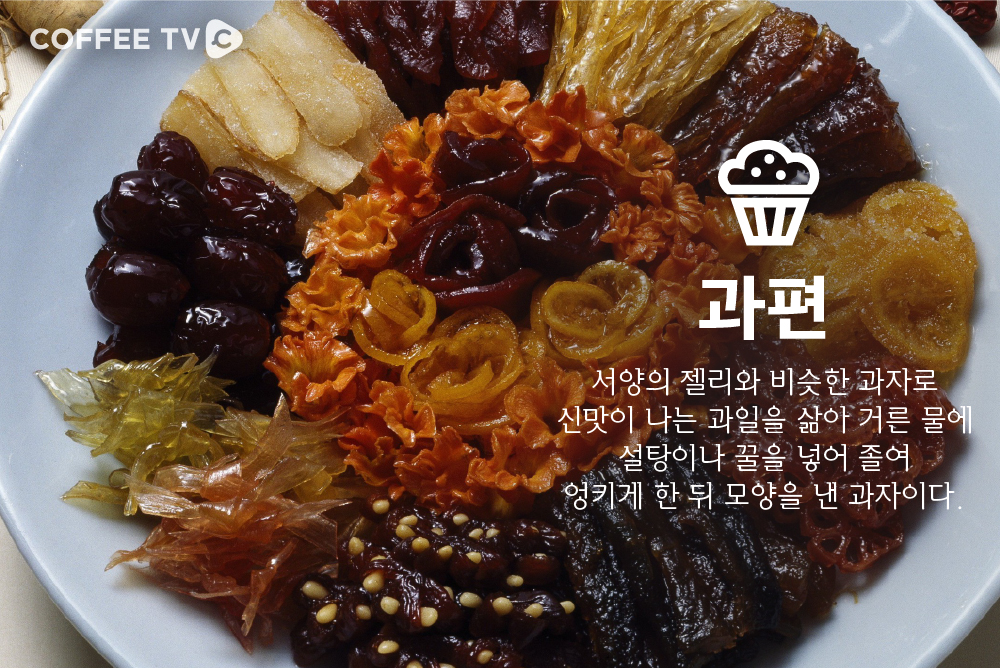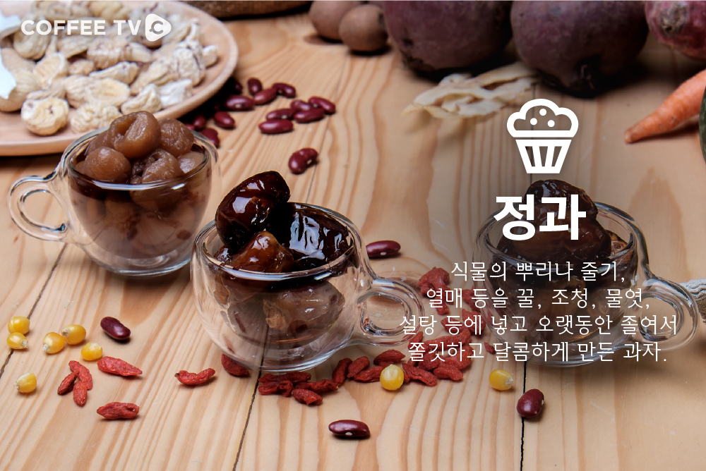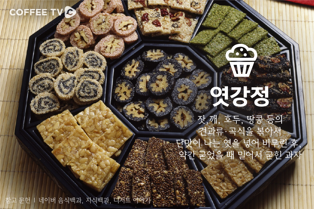 1.유밀과 2. 유과 3.정과 4.다식 5.숙실과 6. 과편 7. 엿강정