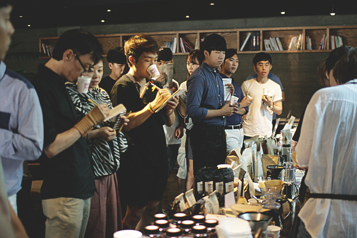 약 60여 명의 카페손님, 바리스타, 로스터, 점주, 업체관계자 등이 모여 약 2시간 동안 15곳의 카페에서 온 신선한 원두들을 맛보고 즐겼습니다.